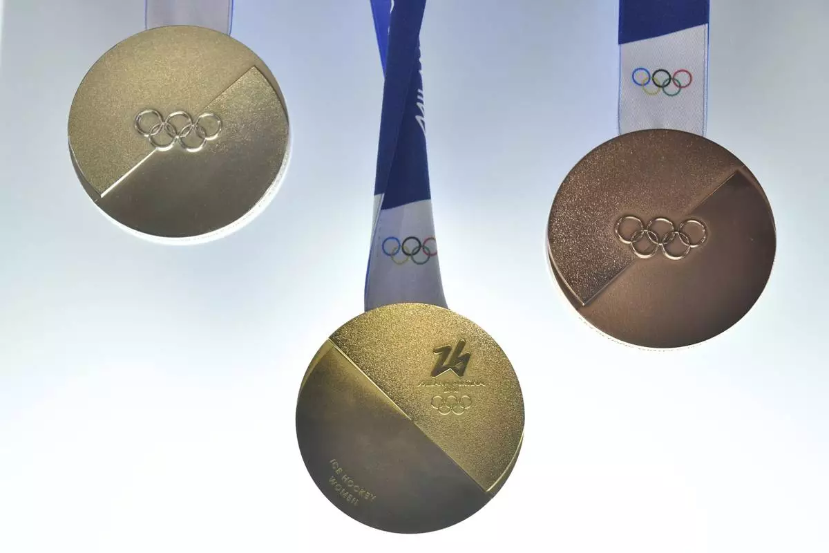 Milano Cortina 2026 Winter Olympics medals are displayed during the unveiling ceremony in Venice, Italy, Tuesday, July 15, 2025. (AP Photo/Luigi Costantini)