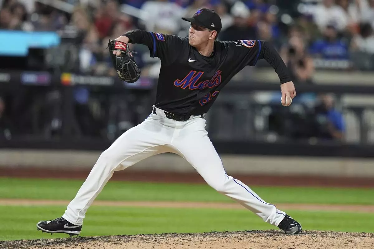 New York Mets' Brandon Waddell pitches during the eighth inning of a baseball game against the Cincinnati Reds Friday, July 18, 2025, in New York. (AP Photo/Frank Franklin II)