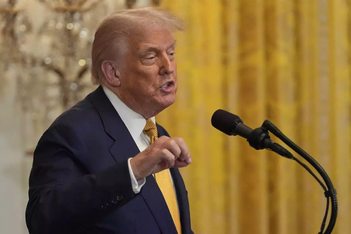 President Donald Trump speaks during a reception for Republican members of Congress in the East Room of the White House, Tuesday, July 22, 2025, in Washington. (AP Photo/Julia Demaree Nikhinson)