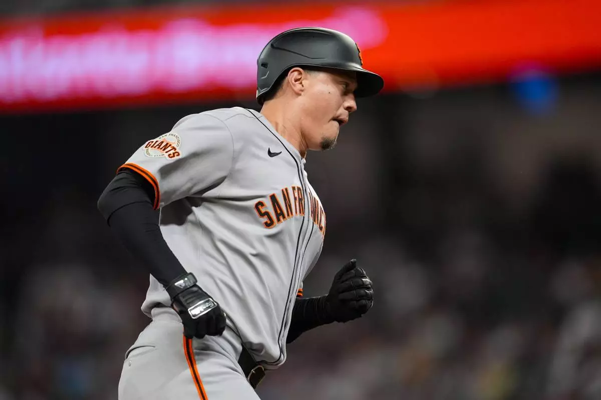 San Francisco Giants' Wilmer Flores (41) rounds the bases after hitting a three-run home run against the Atlanta Braves inning of a baseball game, Tuesday, July 22, 2025, in Atlanta. (AP Photo/Mike Stewart)