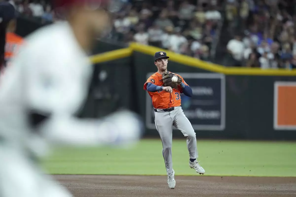 Houston third baseman Mauricio Dubón threw out pinch runner Alek Thomas at the plate in the eighth with the Diamondbacks leading 1-0.