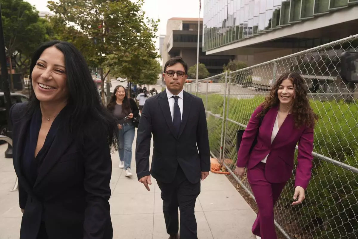 Dr. Salvador Plasencia, center, flanked by his attorneys Debra S. White and Karen L. Goldstein, leaves federal court on Wednesday, July 23, 2025 in Los Angeles, after pleading guilty to giving ketamine to Matthew Perry, leading up to the actor's 2023 overdose death. (AP Photo/Damian Dovarganes)
