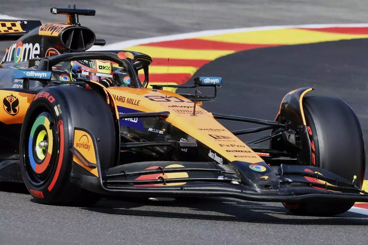 McLaren driver Oscar Piastri of Australia steers his car during the sprint qualification ahead of the Formula One Grand Prix at the Spa-Francorchamps racetrack in Spa, Belgium, Friday, July 25, 2025. (AP Photo/Geert Vanden Wijngaert)