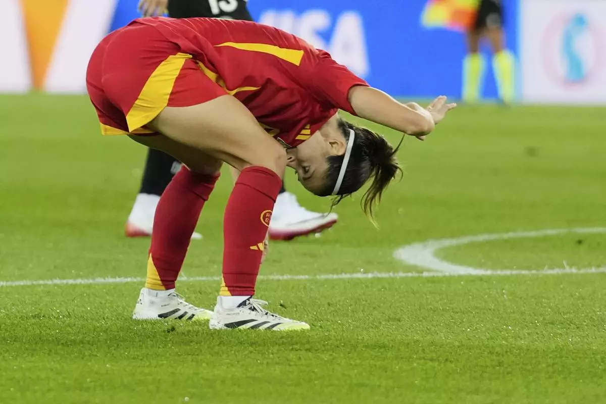 Spain's Aitana Bonmati reacts after a missed chance to score during the Women's Euro 2025 semifinals soccer match between Germany and Spain at Stadion Letzigrund in Zurich, Switzerland, Wednesday, July 23, 2025. (AP Photo/Alessandra Tarantino)