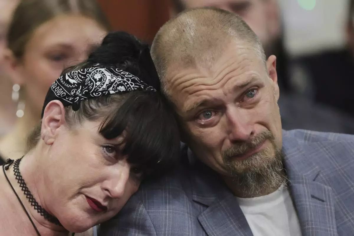 Benjamin Mogen, father of Madison Mogen cries at the sentencing hearing of Bryan Kohberger at the Ada County Courthouse, Wednesday, July 23, 2025, in Boise, Idaho, for brutally stabbing four University of Idaho students to death nearly three years ago. (AP Photo/Kyle Green, Pool)