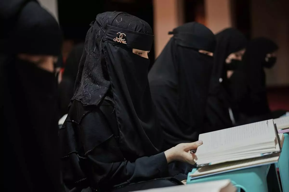 Afghan girls attend a religious studies class at an religious education center in Kabul, Afghanistan, Wednesday, May 28, 2025. (AP Photo/Ebrahim Noroozi)