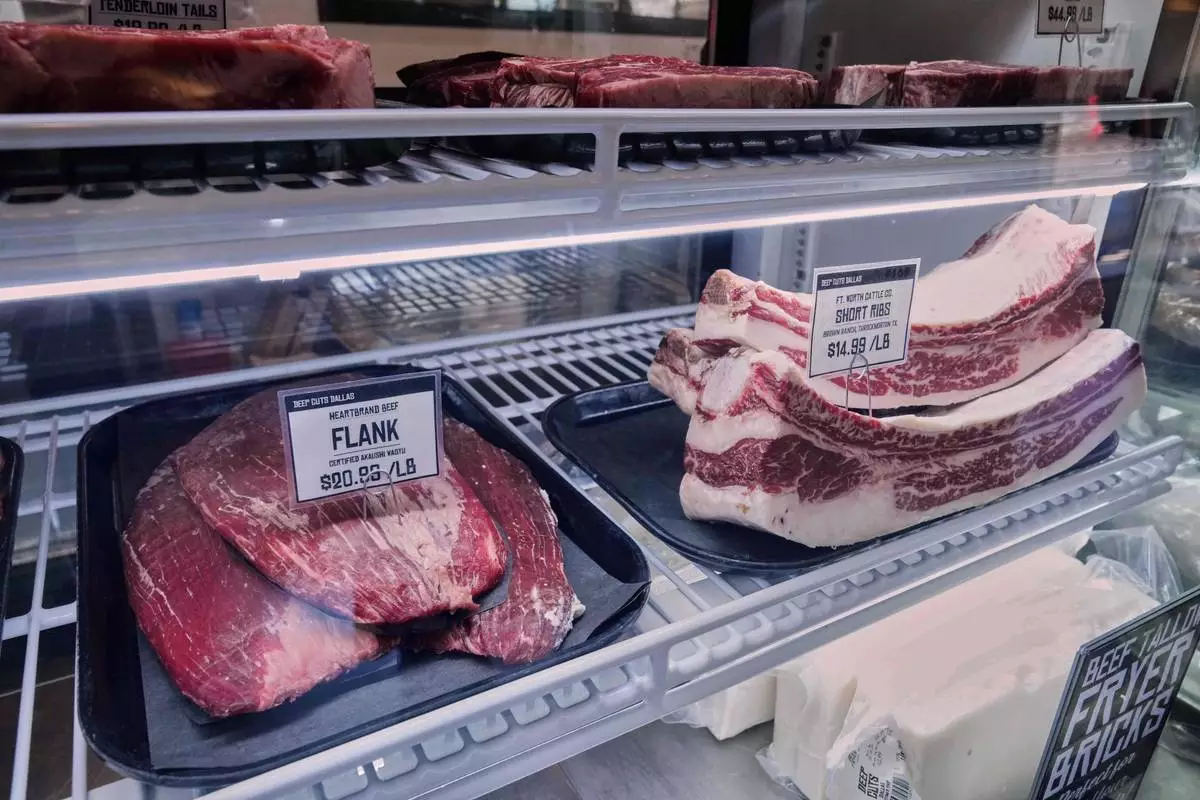 Different cuts of beef sit in the display case at Deep Cuts Dallas Butcher Shop, Thursday, July 24, 2025, in Dallas. (AP Photo/Tony Gutierrez)