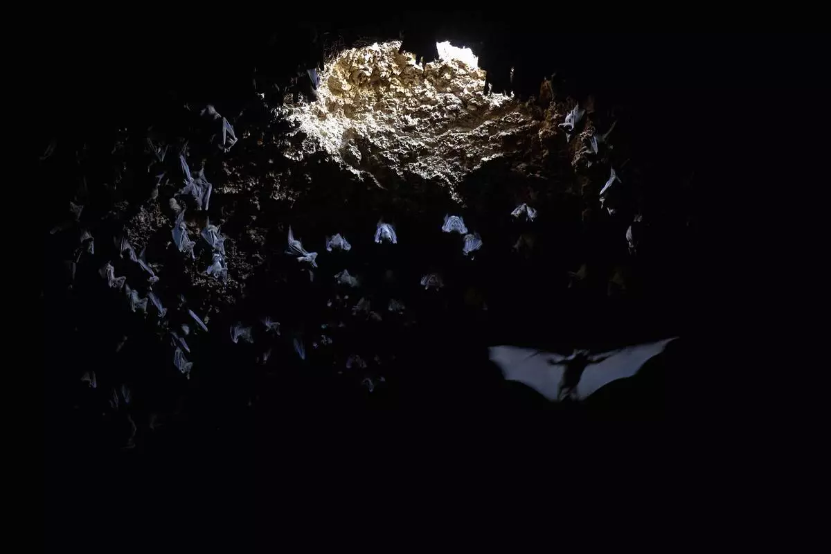 Fruit bats squeak inside in Tinshemet Cave, where archaeologists are excavating one of the world's oldest known burial sites, dating back 100,000 years, near Shoam, Israel, Tuesday, July 15, 2025. (AP Photo/Ariel Schalit)