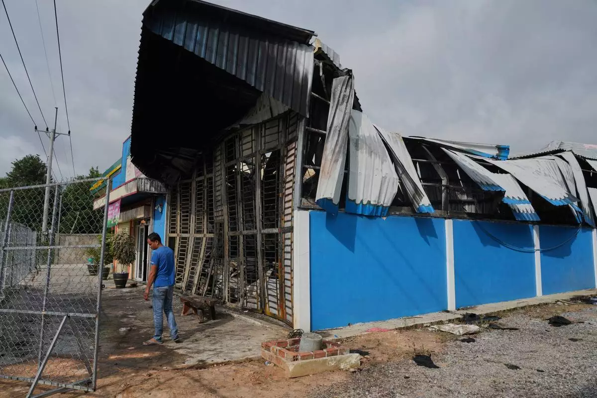 A man stands next to a damaged gas station in Phrong village, Oddar Meanchey province, Cambodia, Wednesday, July 30, 2025, after a ceasefire to end deadly border clashes was reached between Thailand and Cambodia. (AP Photo/Heng Sinith)