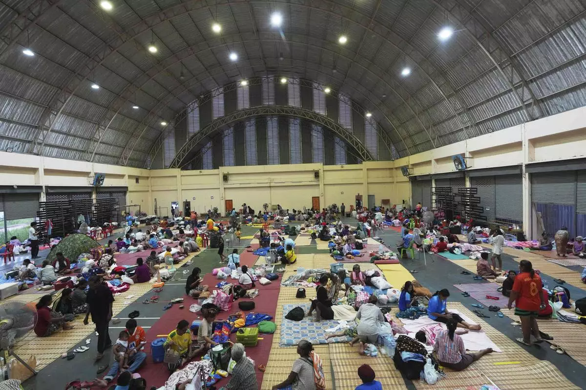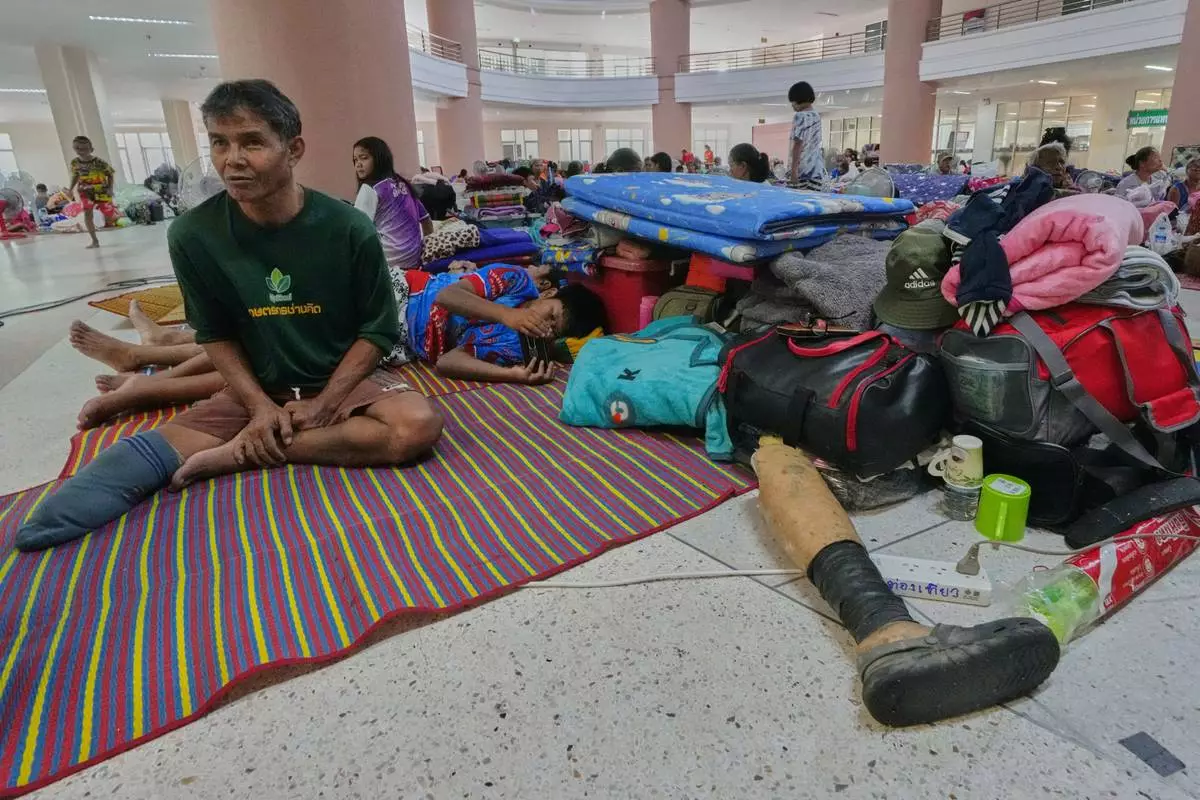 Thai people who fled clashes between Thai and Cambodian soldiers take shelter in Surin province, northeastern Thailand, Thursday, July 24, 2025. (AP Photo/Sunny Chittawil)