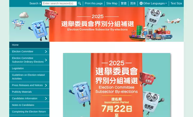 The Returning Officers for various subsectors of the 2025 Election Committee (EC) Subsector By-elections received a total of 17 nomination forms for candidates and one nomination form from designated bodies today (July 24). This has brought to 63 the total number of nomination forms for candidates and six the total number of nomination forms from designated bodies received since nominations for the By-elections opened on July 22. The nomination period will end on August 4.