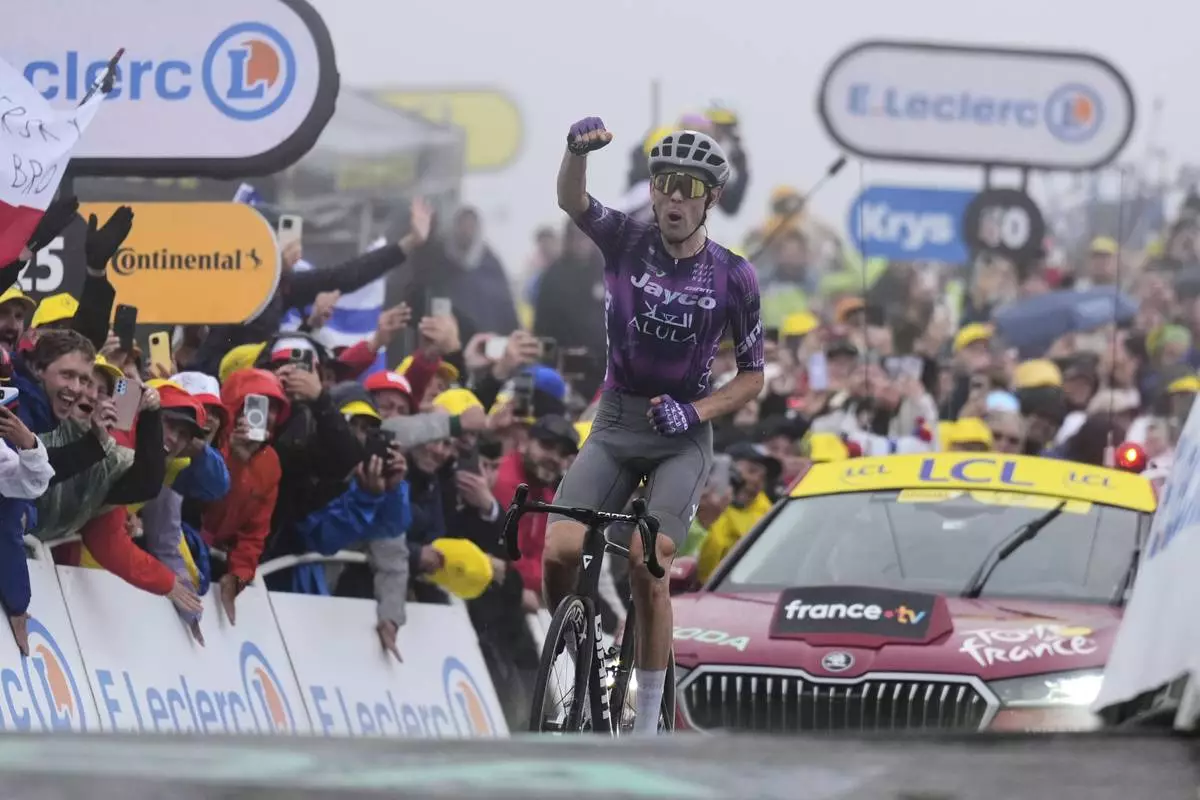 COURCHEVEL, France (AP) — Ben O’Connor won Thursday’s monster Alpine stage to the ski resort of Courchevel as three-time Tour de France champion Tadej Pogačar responded to attacks from archrival Jonas Vingegaard and dropped him to cement his grip on the yellow jersey.