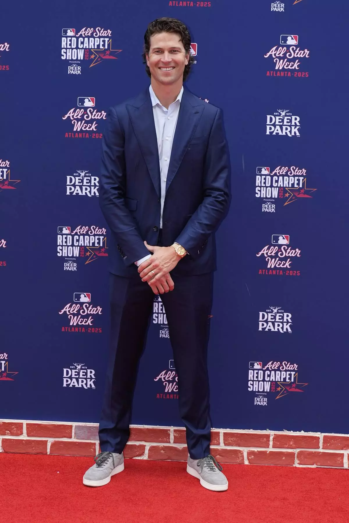 Texas Rangers' Jacob deGrom arrives on the red carpet for the MLB baseball All-Star game, Tuesday, July 15, 2025, in Atlanta. (AP Photo/Mike Stewart)
