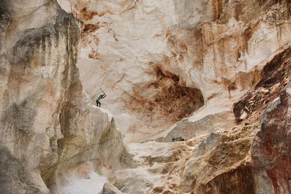 A worker pounds into rock to make gravel and sand in Kenscoff, a neighborhood of Port-au-Prince, Haiti, Thursday, July 24, 2025. (AP Photo/Odelyn Joseph)