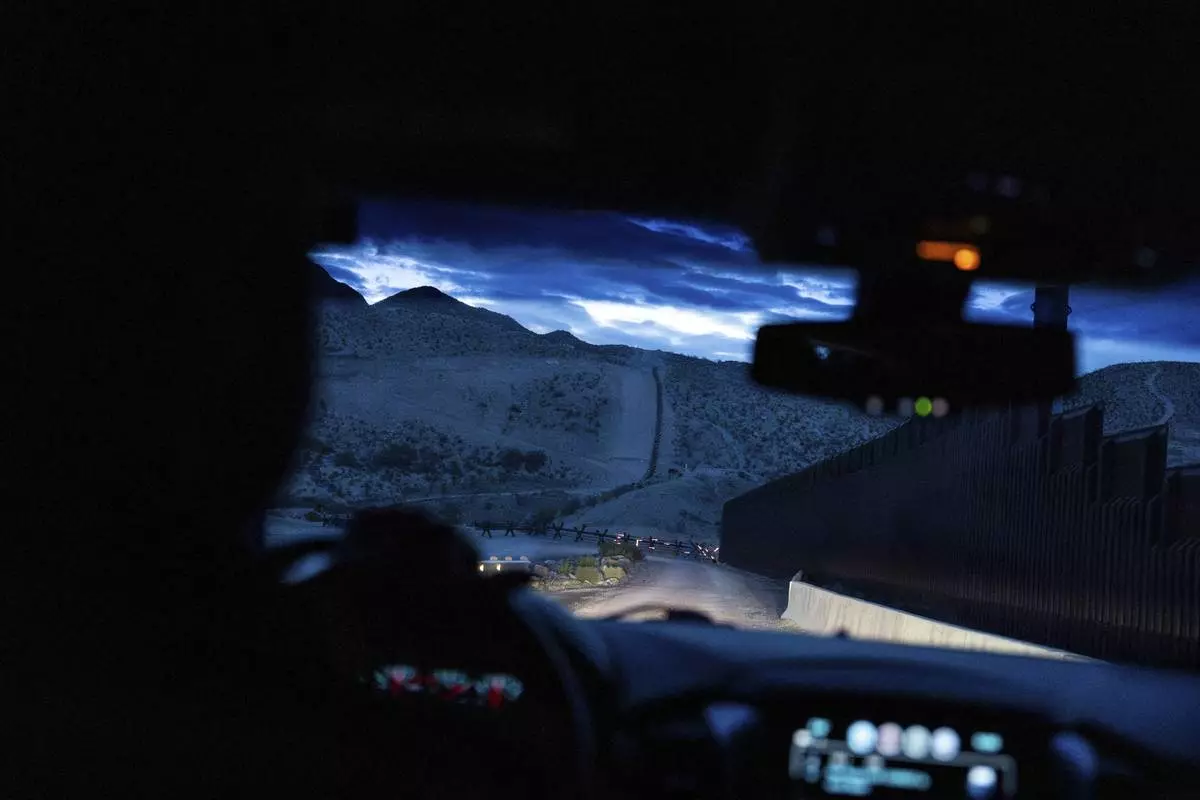 NOGALES, Ariz. (AP) — Inside an armored vehicle, an Army scout uses a joystick to direct a long-range optical scope toward a man perched atop the U.S.-Mexico border wall cutting across the hills of this Arizona frontier community.