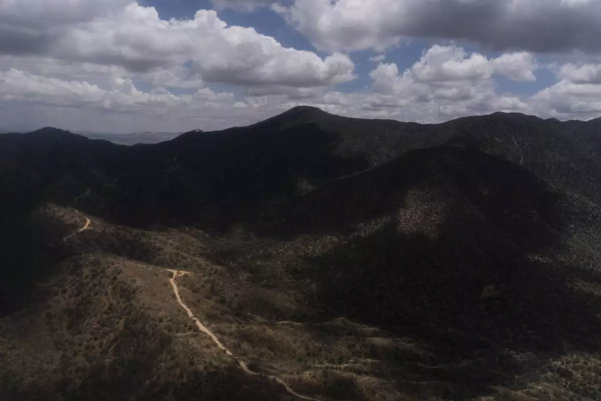 An aerial view shows mountainous terrain near Nogales, Ariz., Tuesday, July 22, 2025. (AP Photo/Jae C. Hong)