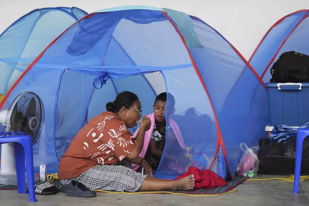 Thai people who fled clashes between Thai and Cambodian soldiers take shelter in Surin province, northeastern Thailand, Thursday, July 24, 2025. (AP Photo/Sunny Chittawil)