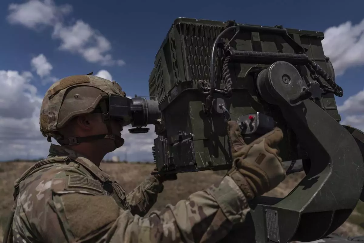 U.S. Army Spc. Jerimiah Starcher demonstrates the Long Range Advanced Scout Surveillance System on a Stryker combat vehicle in Nogales, Ariz., Tuesday, July 22, 2025. (AP Photo/Jae C. Hong)