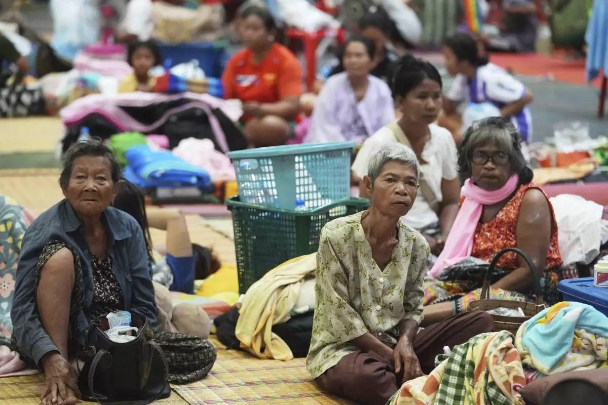 Around 600 people took shelter at a gymnasium in a university in Surin, Thailand, about 80 kilometers (50 miles) from the border. Evacuees sat in groups, on mats and blankets, and queued for food and drinks.