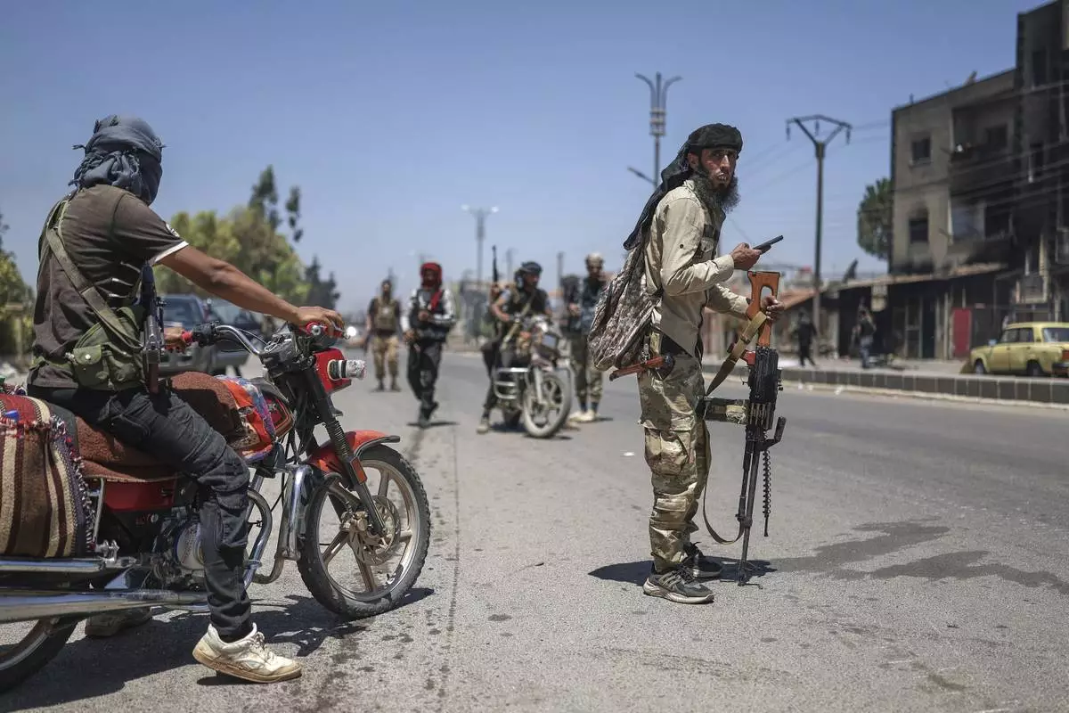 FILE - Bedouin fighters deploy at Mazraa village on the outskirts of Sweida city, during clashes between the Bedouin clans and Druze militias, southern Syria, Friday, July 18, 2025. (AP Photo/Ghaith Alsayed, File)