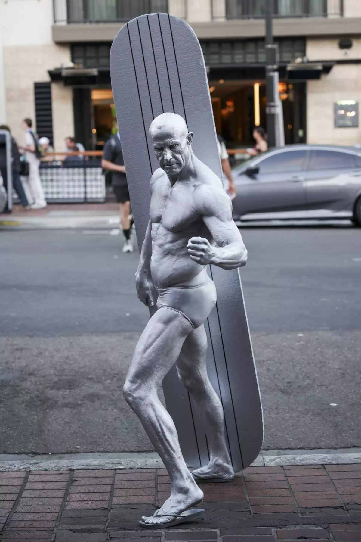 Todd Schmidt of San Diego, Calif. dressed as Silver Surfer from "Fantastic Four" attends Comic-Con International on Thursday, July 24, 2025, in San Diego. (Photo by Andrew Park/Invision/AP)