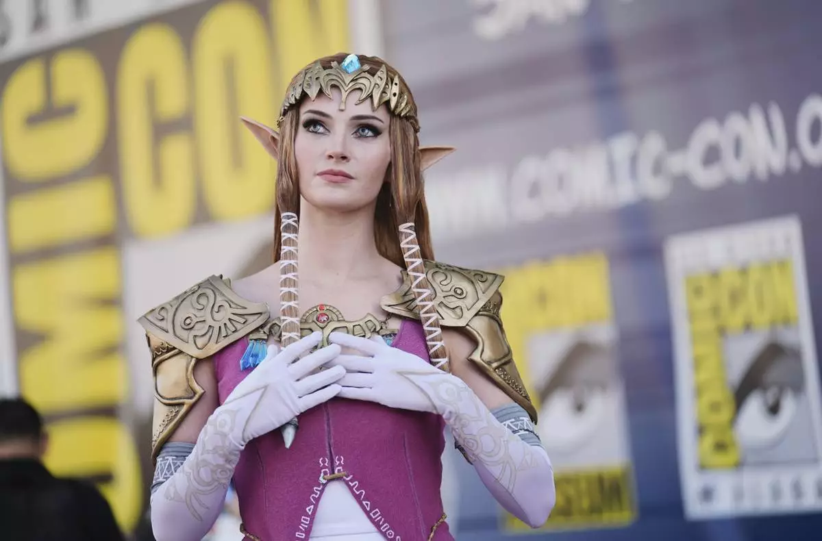 Allison Tabitha, of Orlando, Fla., dressed as Zelda from the "Legend of Zelda" video game, poses for photographers before the 2025 Comic-Con International Preview Night on Wednesday, July 23, 2025, in San Diego. (AP Photo/Chris Pizzello)