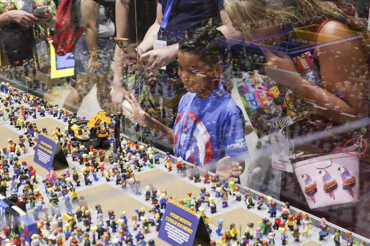 Onlookers view a Lego installation during preview night for Comic-Con International on Wednesday, July 23, 2025, in San Diego. (Photo by Andrew Park/Invision/AP)