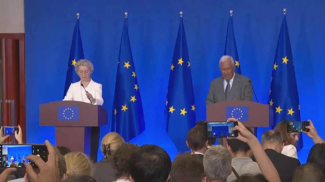 Also on Thursday, Costa and von der Leyen held a joint press conference at the Delegation of the EU to China in Beijing.