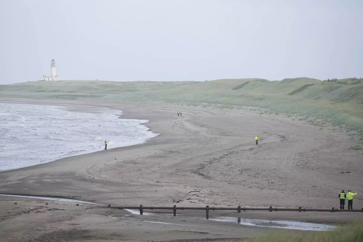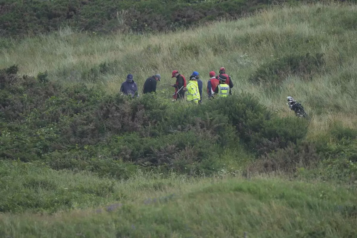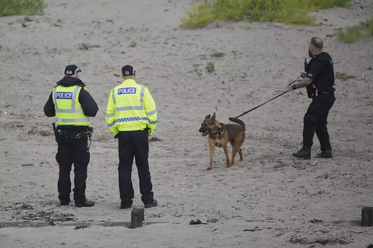 A police dog handler walks his dog on the beach to help with security at the Trump Turnberry golf course in Turnberry, Scotland, Friday, July 25, 2025, ahead of President Trump's visit Scotland. (AP Photo/Alastair Grant)