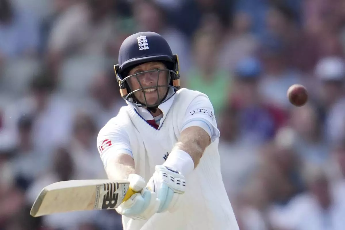 England's Joe Root plays a shot on the third day of the fourth cricket test match between England and India at Emirates Old Trafford, Manchester, England, Friday, July 25, 2025. (AP Photo/Jon Super)