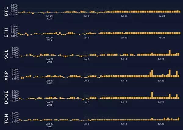 - ETH Funding Rates Are Remarkably Strong: ETH spot price had more than doubled since its $1,500 level in April, bolstered by consistent positive inflows to ETH Spot ETFs and rising corporate interest in building ETH treasuries. ETH funding rates follow the broader positive trend of the market.