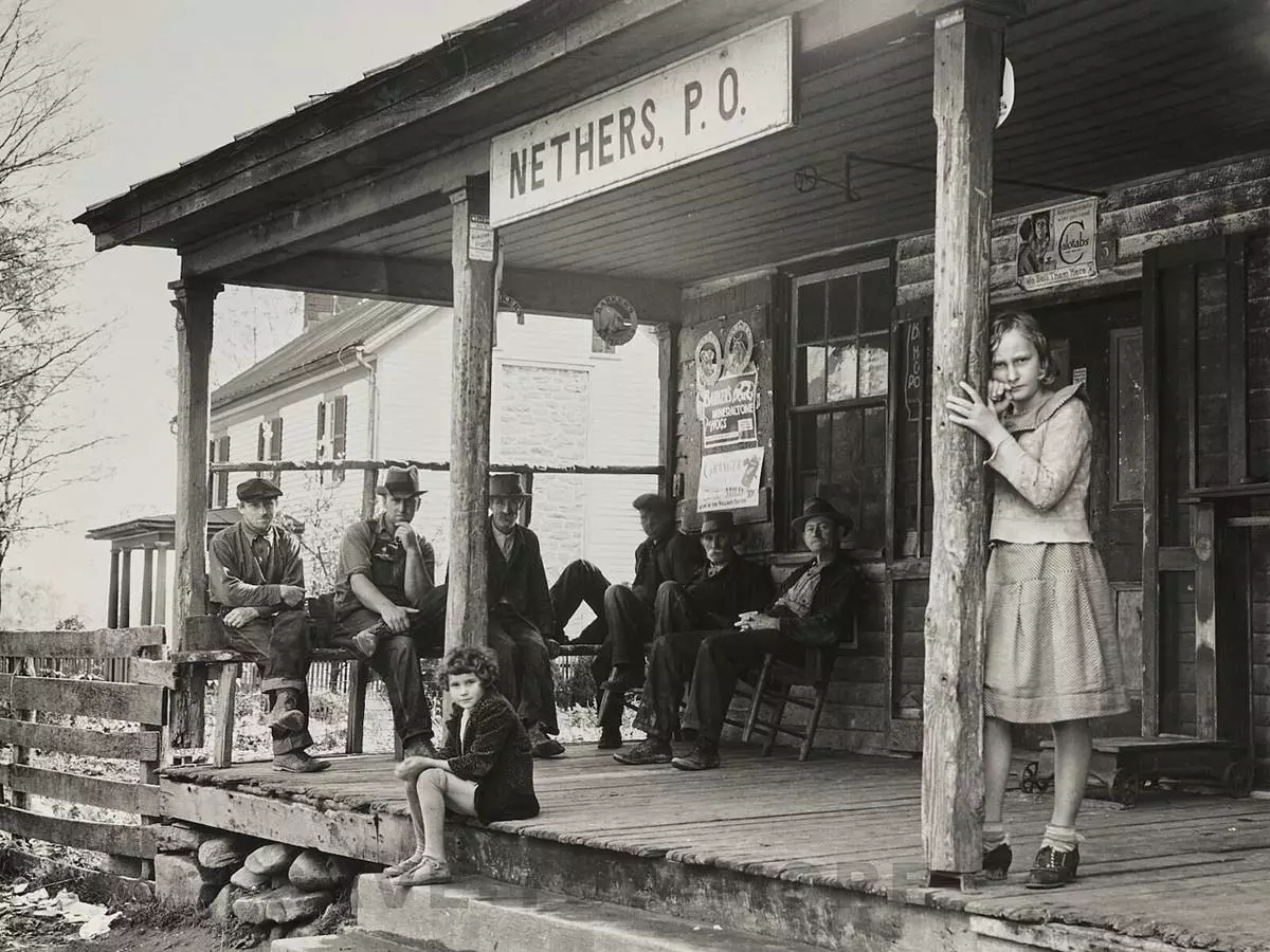 This photo provided by the Library of Congress shows people at the Nethers, Va., post office in Oct. 1935, during the Great Depression. (Arthur Rothstein/Farm Security Administration/Library of Congress via AP)