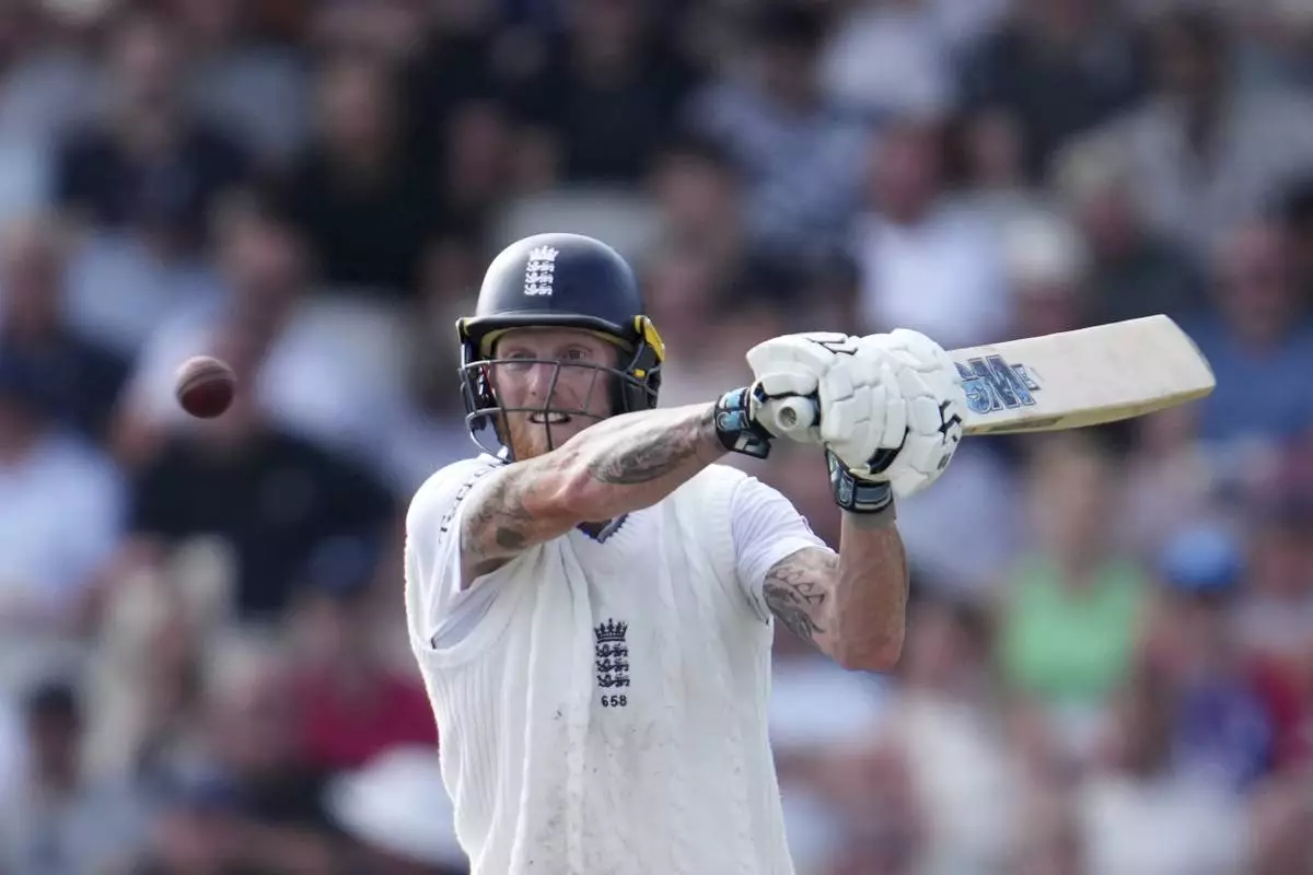 England's captain Ben Stokes loose his balance while playing a shot on the third day of the fourth cricket test match between England and India at Emirates Old Trafford, Manchester, England, Friday, July 25, 2025. (AP Photo/Jon Super)