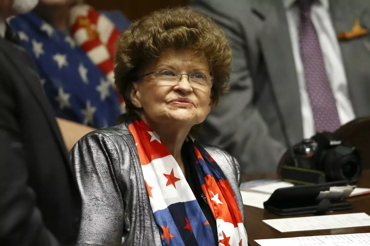 Arizona state Rep. Gail Griffin, R-Hereford, looks to the gallery from the floor of the House of Representatives at the Capitol on the opening day of the legislative session in Phoenix, Jan. 13, 2020. (AP Photo/Ross D. Franklin)