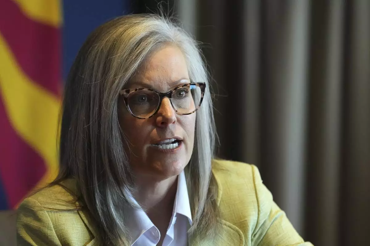 FILE - Arizona Democratic Gov. Katie Hobbs talks about the legislative session and other top issues in Arizona during an interview at the Capitol in Phoenix, July 10, 2025. (AP Photo/Ross D. Franklin, File)