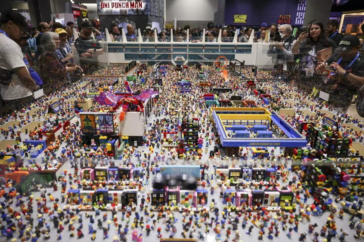 Onlookers view a Lego installation during preview night for Comic-Con International on Wednesday, July 23, 2025, in San Diego. (Photo by Andrew Park/Invision/AP)