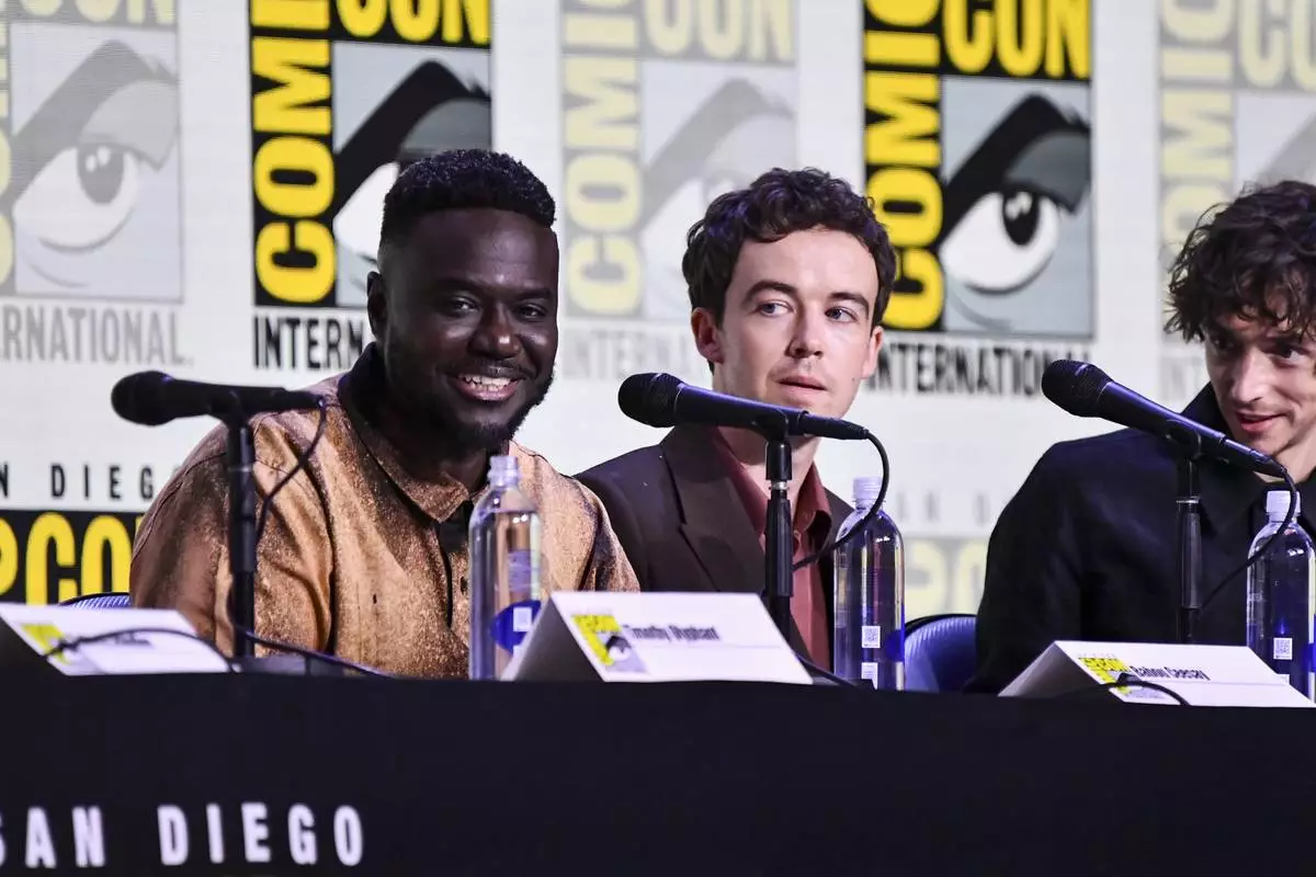 Babou Ceesay, from left, Alex Lawther, and Samuel Blenkin attend a panel for "Alien: Earth" during Comic-Con International on Friday, July 25, 2025, in San Diego. (Photo by Richard Shotwell/Invision/AP)