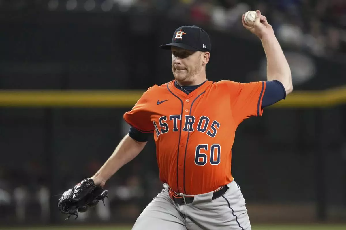 Houston Astros pitcher Brandon Walter throws during the first inning of a baseball game against the Arizona Diamondbacks, Wednesday, July 23, 2025, in Phoenix. (AP Photo/Rick Scuteri)