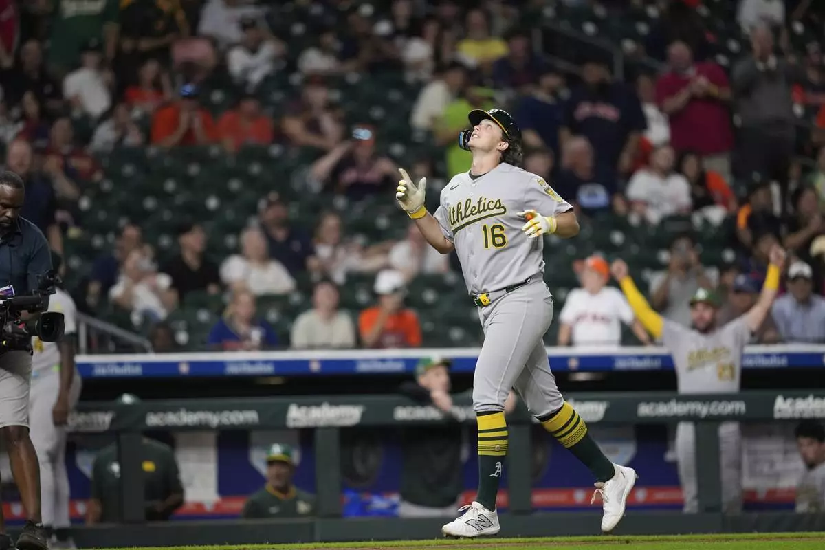 HOUSTON (AP) — Nick Kurtz already had three homers and five hits with his parents and godparents in attendance as he began his final at-bat with a chance to make history, but none of that was top of mind for the Athletics' astonishing rookie slugger.