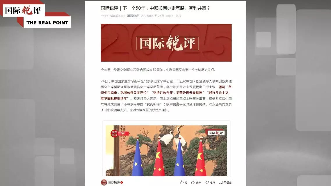 The commentary followed Thursday's meeting between Chinese President Xi Jinping and European Council President Antonio Costa, alongside European Commission President Ursula von der Leyen.