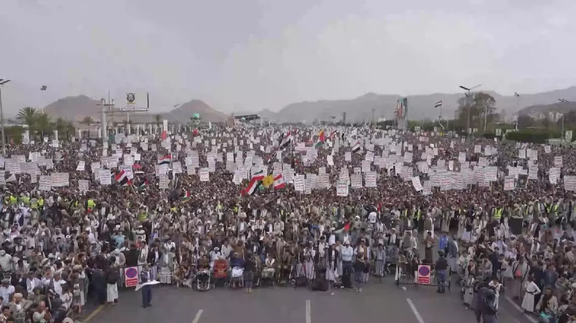 Tens of thousands of Yemenis gathered for a mass demonstration in the Yemeni capital Sanaa on Friday to protest against what they called a "man-made" mass starvation in the besieged Gaza Strip.