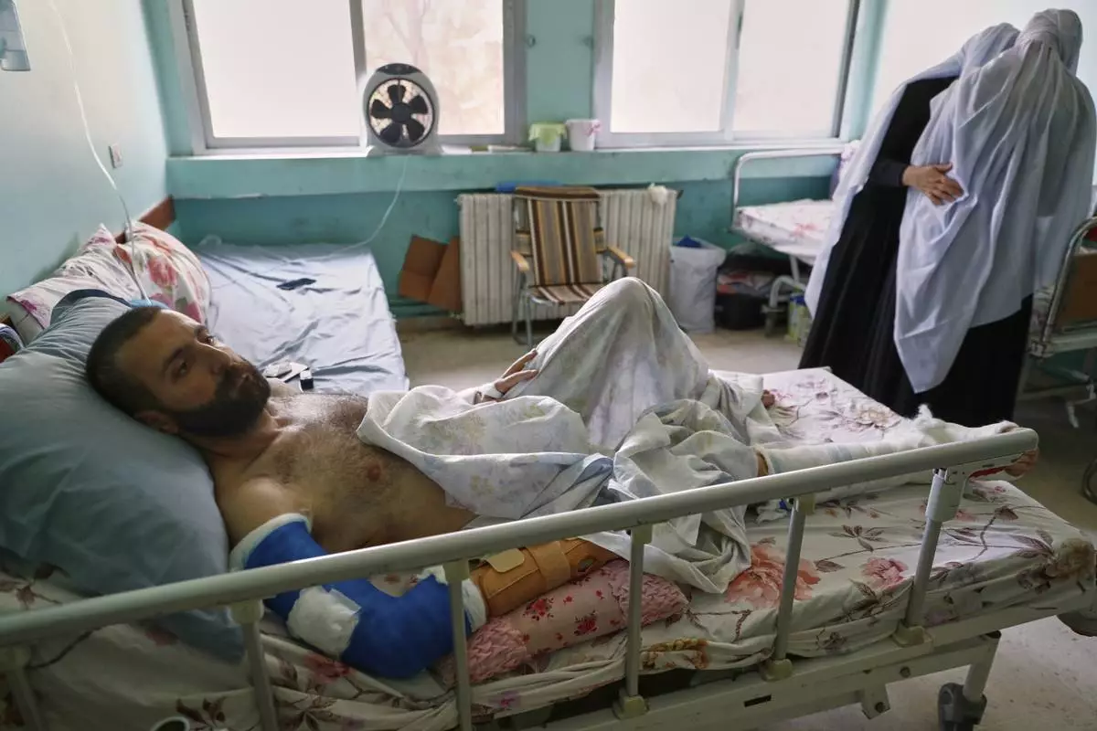 A wounded man lies in a hospital bed at the National Hospital after last week's sectarian clashes in the Druze-majority town of Sweida, Syria, on Friday, July 25, 2025. (AP Photo/Omar Sanadiki)