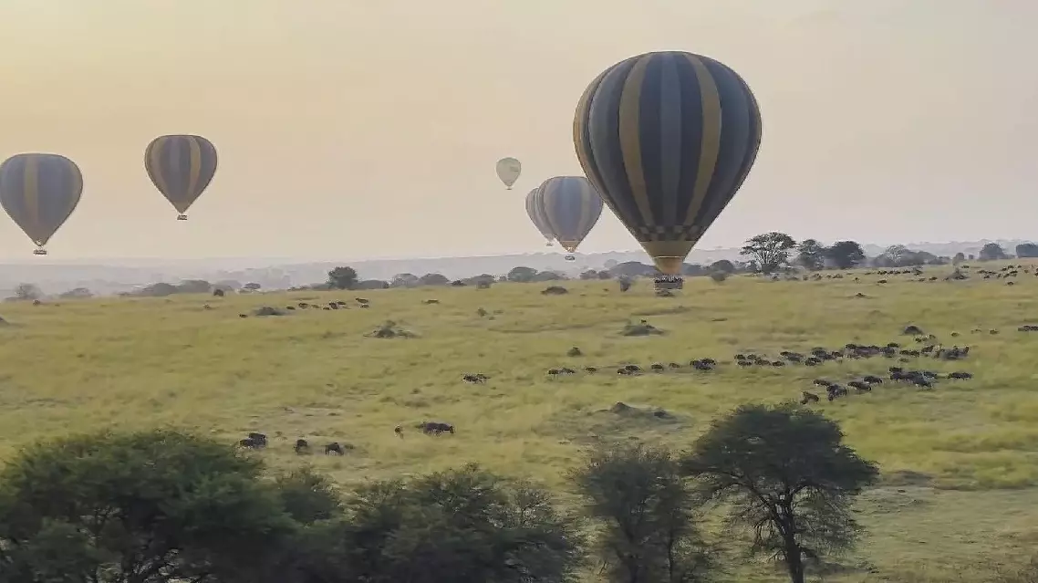 Balloon tours in Tanzania's Serengeti National Park provide panoramic vistas of the migration army and diverse ecosystems.