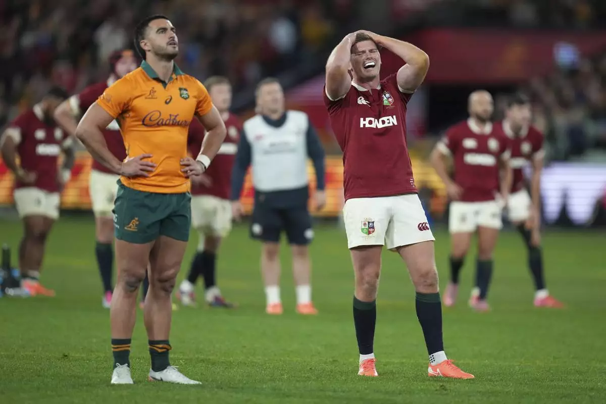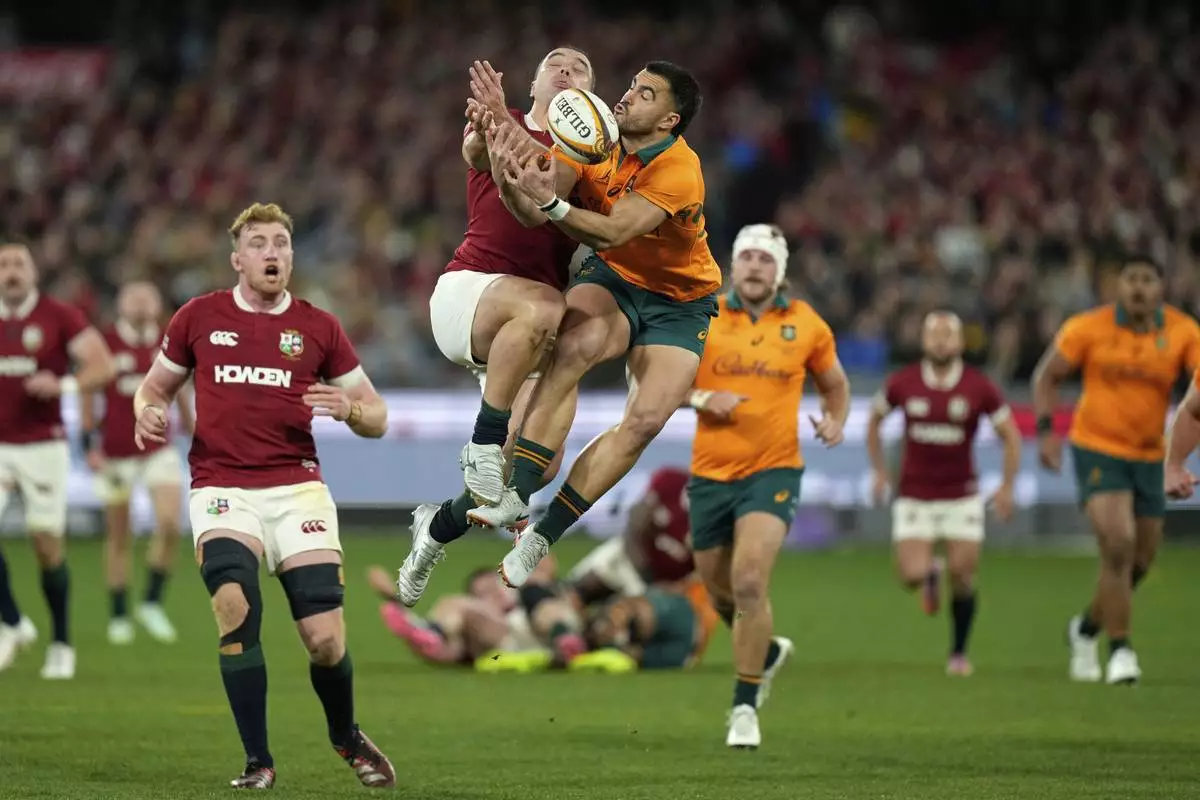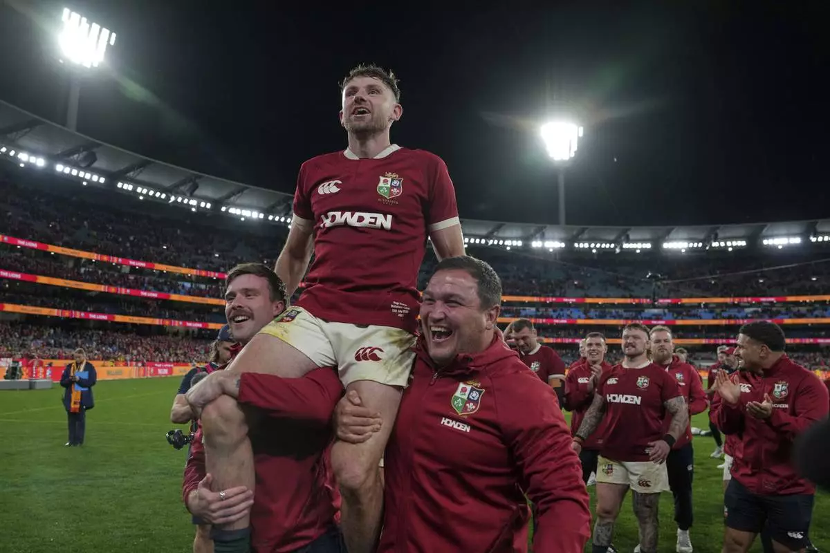 MELBOURNE, Australia (AP) — A contentious try in the last minute by Hugo Keenan capped an extraordinary comeback win for the British and Irish Lions over the Wallabies in the second test on Saturday, played in front of 90,000 fans at the Melbourne Cricket Ground.