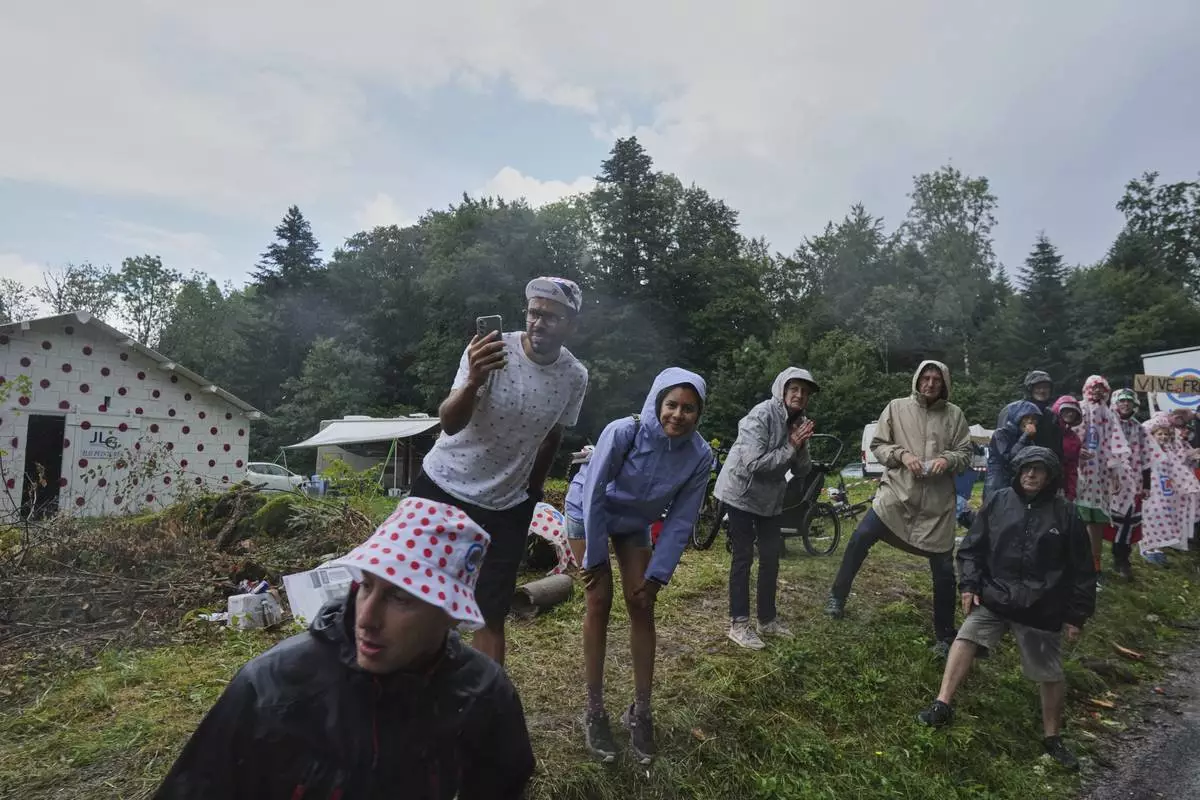 Spectators wait for the riders to pass during the twentieth stage of the Tour de France cycling race over 184.2 kilometers (114.5 miles) with start in Nantua and finish in Pontarlier, France, Saturday, July 26, 2025. (AP Photo/Thibault Camus)