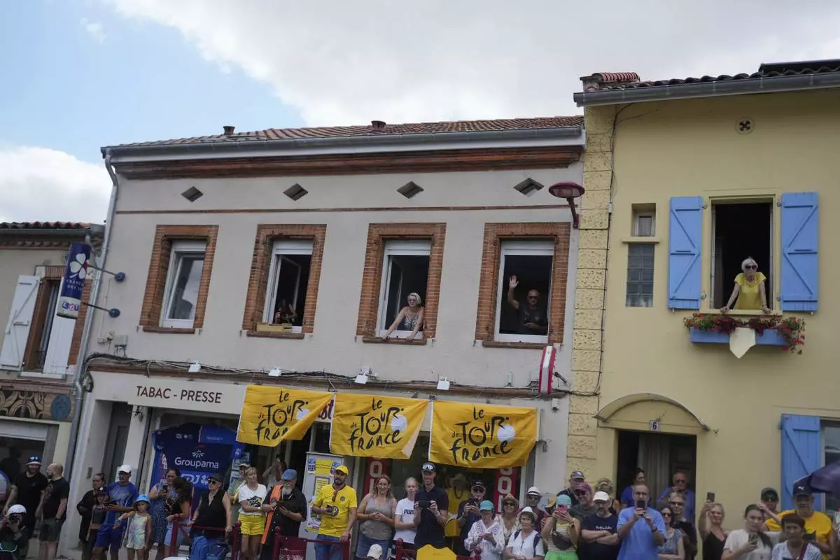 Spectators wait for the riders to pass during the fifteenth stage of the Tour de France cycling race over 169.3 kilometers (105.2 miles) with start in Muret and finish in Carcassone, France, Sunday, July 20, 2025. (AP Photo/Mosa'ab Elshamy)