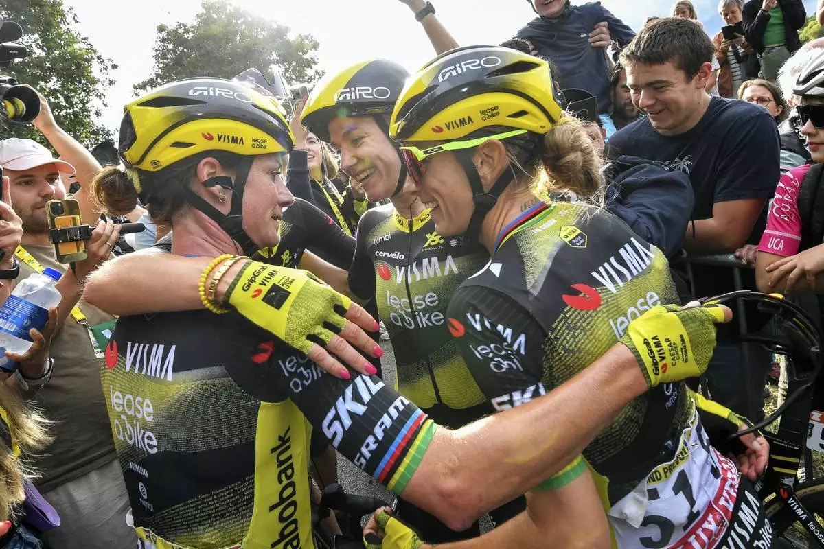 The hilly 78.8-kilometer (48.9-mile) route from Vannes to Plumelec in Brittany featured two small climbs and was completed in 1 hour, 53 minutes, 3 seconds by Vos — a multiple world champion, a former Olympic road race champion and a silver medalist at last year’s Paris Games.