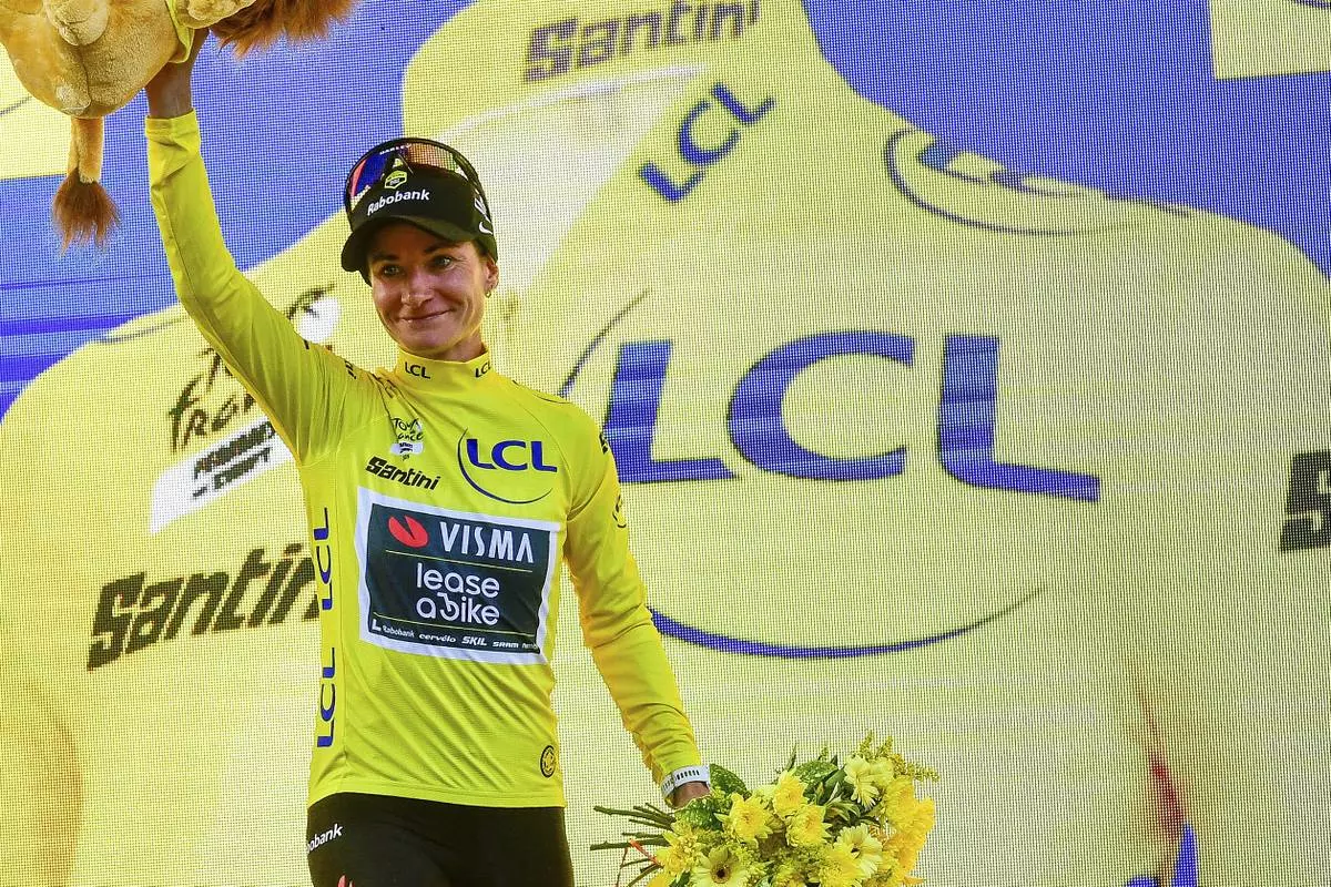 PLUMELEC, France (AP) — Cycling great Marianne Vos won the opening stage of the women's Tour de France with a brilliant late attack on Saturday.