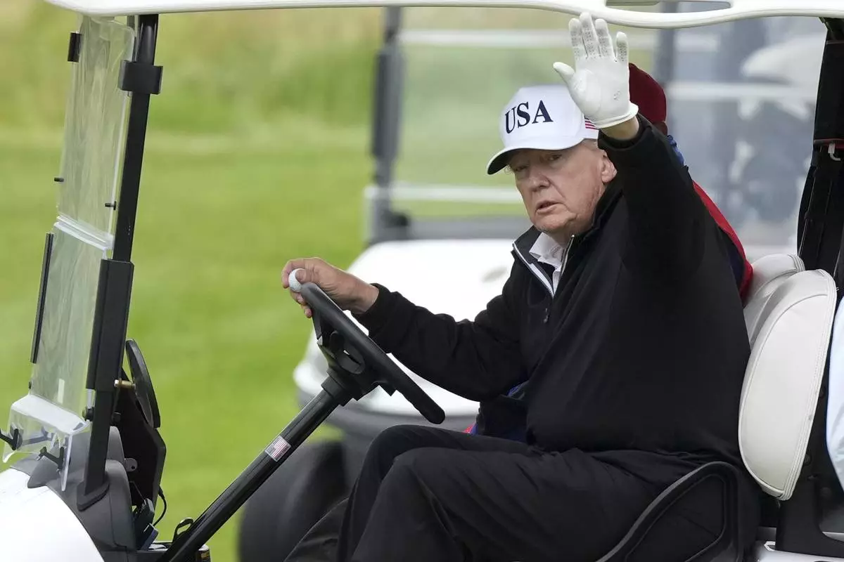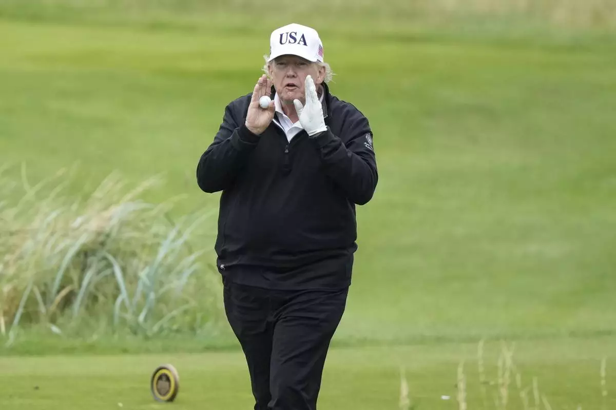 President Donald Trump plays golf at the Trump Turnberry golf course in Turnberry, Scotland, Sunday, July 27, 2025.(AP Photo/Alastair Grant)