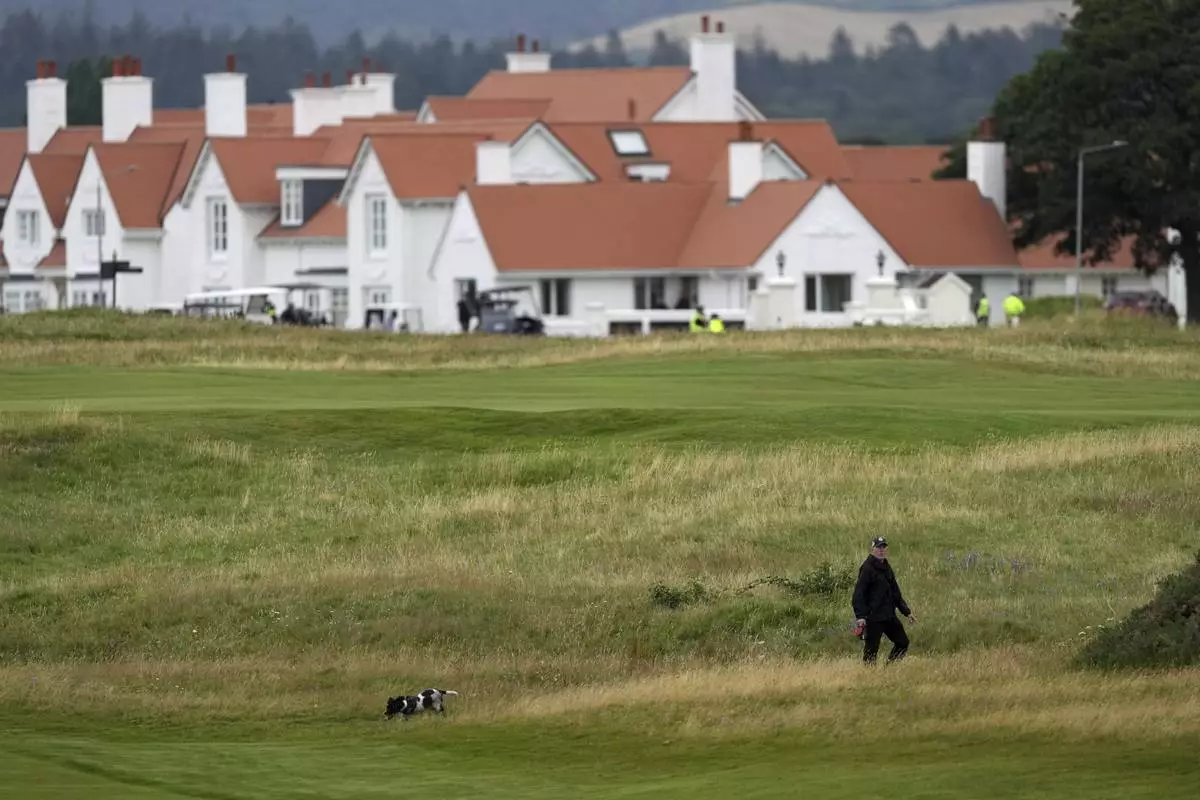 Police forces with dogs search the area at the Trump Turnberry golf course in Turnberry, Scotland, Saturday, July 26, 2025 as President Donald Trump begins his five-day private trip to the country.(AP Photo/Alastair Grant)